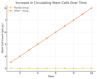 - Increase in Circulating Stem Cells Over Time: Displays a steady rise in the number of circulating stem cells in the AFAlo™ group compared to the placebo group over 10 days.