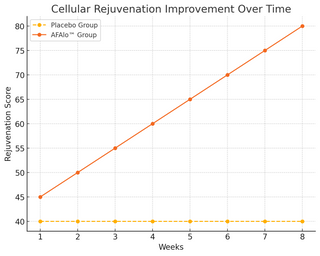 - Cellular Rejuvenation Improvement Over Time: Illustrates progressive enhancement in cellular rejuvenation markers over 8 weeks in the AFAlo™ group.