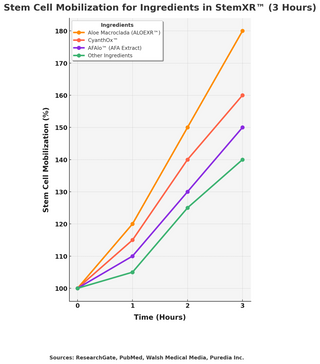 CellRegen StemXR™ Effectiveness The graph below highlights StemXR’s ability to boost stem cell mobilization within 3 hours. This powerful formula supports natural renewal, restores vitality, and promotes healthier aging for optimal well-being.